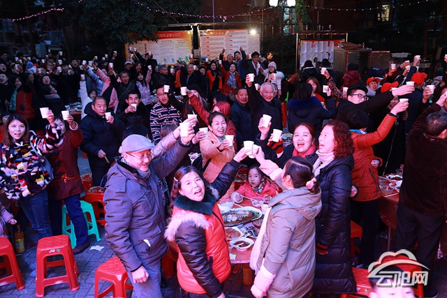 鄰居們一邊品嘗菜肴,一邊相互奉菜,一些愛喝酒的居民在杯中斟滿了美酒,互相碰杯。“讓我們一起舉杯,辭舊迎新!”“干杯!”鄰居們端起酒、茶,在玻璃杯相互碰撞發(fā)出的悅耳聲響中,大家不僅感受到了濃濃的年味,還有一份暖暖的鄰里情。