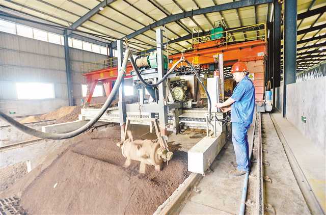 5月22日,豐都縣高家鎮(zhèn)重慶豐澤園肥業(yè)有限公司工人正在操作養(yǎng)殖有機廢棄物無害化處理生產(chǎn)線。記者 鄭宇 攝