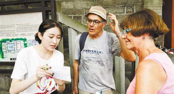 在北碚區(qū),前往自然博物館參觀的外國旅客對博物館提供的解說服務(wù)表示滿意。