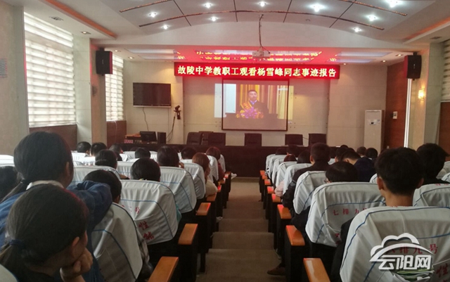 云陽網訊(記者 劉雪梅 通訊員 楊傳武)偉大時代呼喚偉大精神,崇高事業需要榜樣引領。10月15日,“時代楷模” 楊雪峰同志先進事跡報告會在人民大會堂舉行,云陽縣故陵初級中學90余名師生觀看央視網直播。