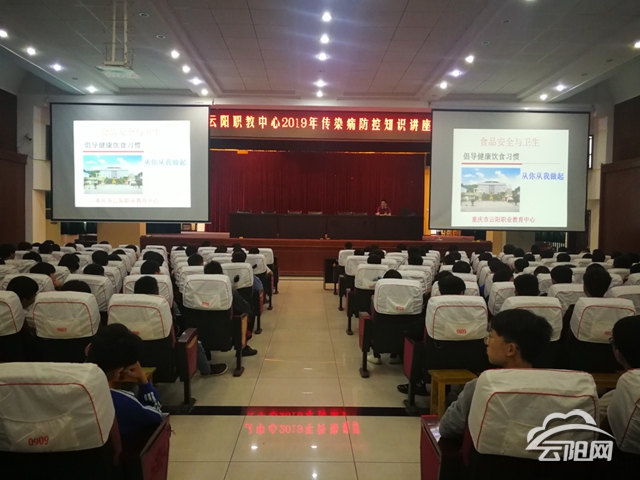云陽(yáng)網(wǎng)訊(記者 楊梅娜 通訊員 張小林)“同學(xué)們,常言道‘病從口入’,夏季是腸道傳染病的多發(fā)季節(jié),我們一定要養(yǎng)成良好的飲食衛(wèi)生習(xí)慣和生活習(xí)慣,特別注意飲食安全,不吃垃圾食品,防止病從口入……”近日,云陽(yáng)職教中心舉辦傳染病防控知識(shí)講座,600余名智能制造專業(yè)部的學(xué)生聽(tīng)取講座。