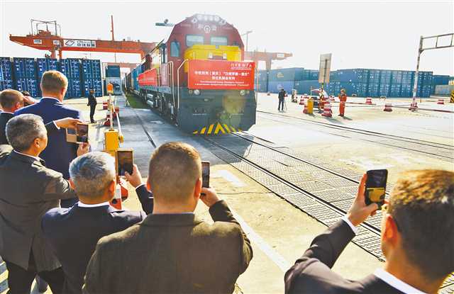 沙坪壩區(qū)團結(jié)村鐵路集裝箱中心站,中歐班列(重慶)“白俄羅斯-重慶”傳化乳制品專列抵達(dá)重慶。(本報資料圖片)記者 萬難 攝