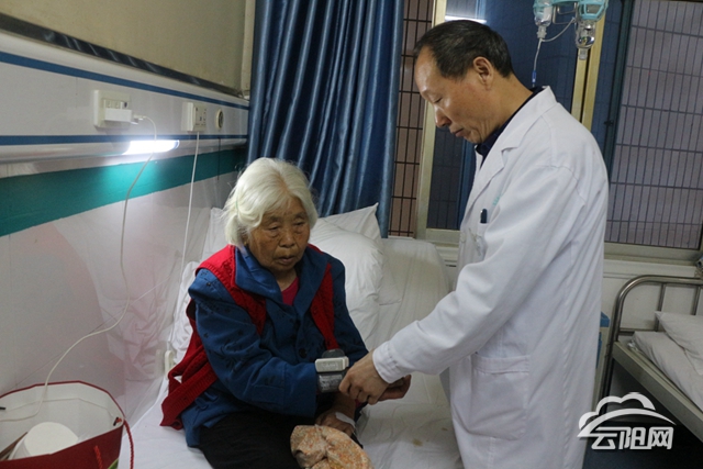 秦茂平看完前來(lái)就診的病人,他又拿著血壓器為住院病人量血壓,在整個(gè)過(guò)程中,他都是面帶微笑,與病人溝通時(shí)也是輕聲細(xì)語(yǔ)。