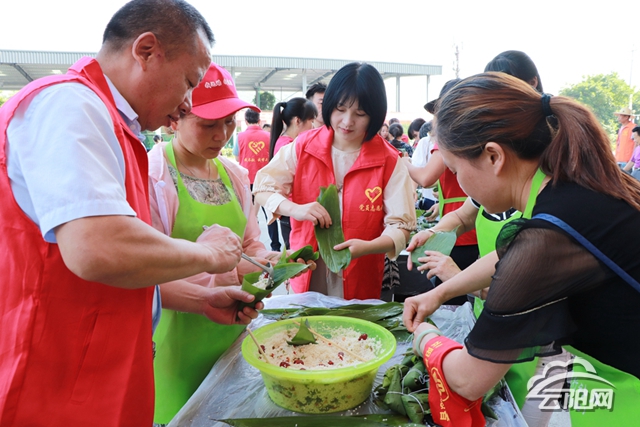 云陽網訊(記者 何競嘉)“首先將兩片粽葉折疊成漏斗狀,然后開始放糯米……”6月4日 ,雙江街道桂灣社區舉行“粽子傳愛心,共度粽香端午”社區一家親包粽子活動。來自縣交通局、縣委黨校、縣機關事務服務中心等共駐共建單位分別派出了各自的包粽子好手,力爭拔得頭籌。