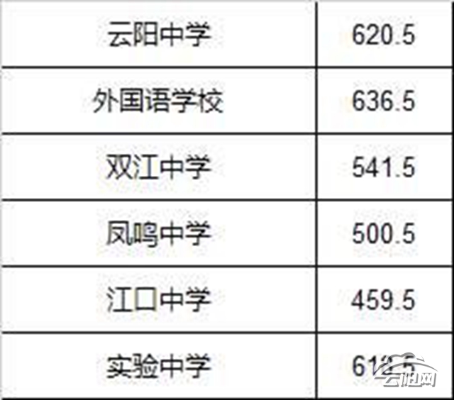 云陽網訊(記者 王彬彬)6月24日,記者獲悉,云陽2019年中考錄取分數線出爐,其中云陽中學錄取分數線為620.5分;外國語中學錄取分數線636.5分;云陽實驗中學錄取分數線618.5分;雙江中學錄取分數線541.5分;鳳鳴中學錄取分數線500.5分;江口中學錄取分數線459.5分。