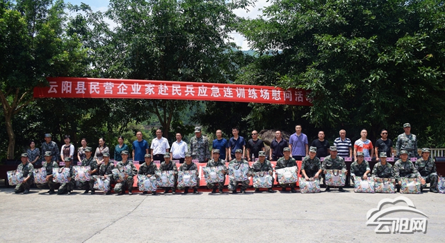 云陽網訊(實習生 劉超)7月14日,縣政協副主席曾愛民帶領縣經信委、縣工商聯和部分民營企業家來到民兵應急連訓練現場,對參加訓練的民兵進行慰問。
