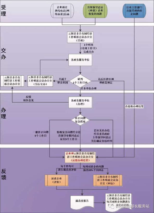 (二)各政務服務單位根據其職能職責,按規定及時安排專人辦理,并在1個工作日內向云陽縣非公有制經濟工作聯席會議辦公室反饋初步意見;