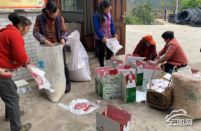 黃土村距縣城87.5公里,地理位置偏遠,運輸成本高導致農產品銷路不暢。經駐村工作隊及村支“兩委”協商,決定開展消費扶貧,借助“天生云陽”農產品區域公用品牌,對農戶的花生、大米、紅薯粉等農產品進行統一包裝,由縣生態環境局提供包裝費用和運輸成本,村支“兩委”負責召集并幫助在家貧困戶集聚農產品。通過幫扶干部購買農產品,有效促進農產品變商品,激發了貧困戶發展生產的動力。