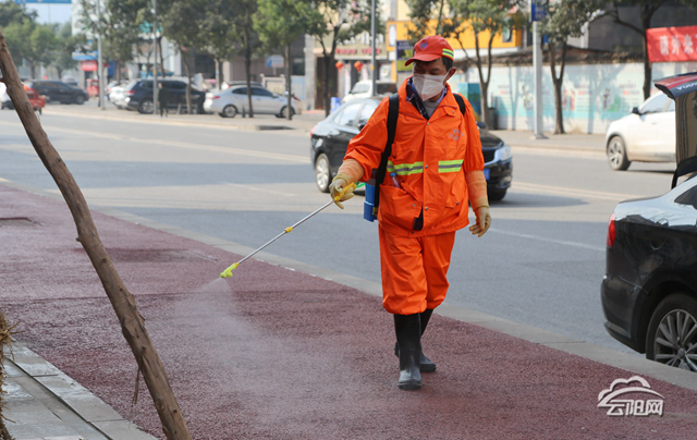 當天,記者在縣城濱江大道、塘坊路等路段看到,一支消毒分隊正在對人行道、背街小巷、衛生死角等進行消毒。“消毒人員每天早上七點開始進行消毒工作,使用的消毒水是漂白粉按照一定比例配置而成,能起到消毒殺菌的效果。我們每天都會巡查監督,確保消毒工作落實到位?!笨h城管局環衛所清掃清運大隊大隊長盧延澤介紹說,6支小分隊成員每人每天大概要走20多公里的里程,一天下來能夠實現城區公共場所消毒全覆蓋。