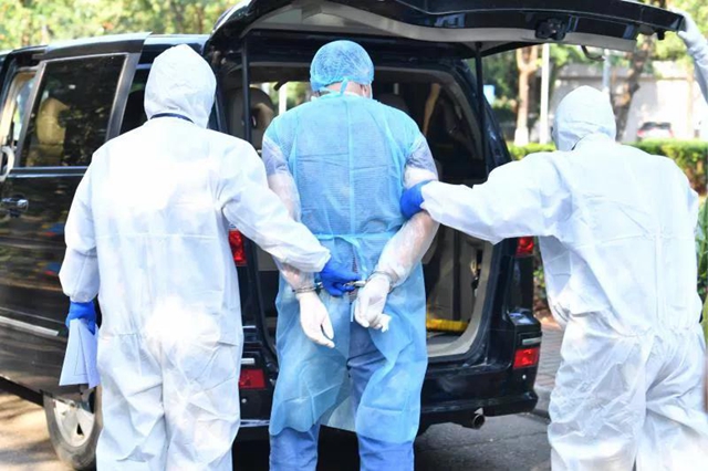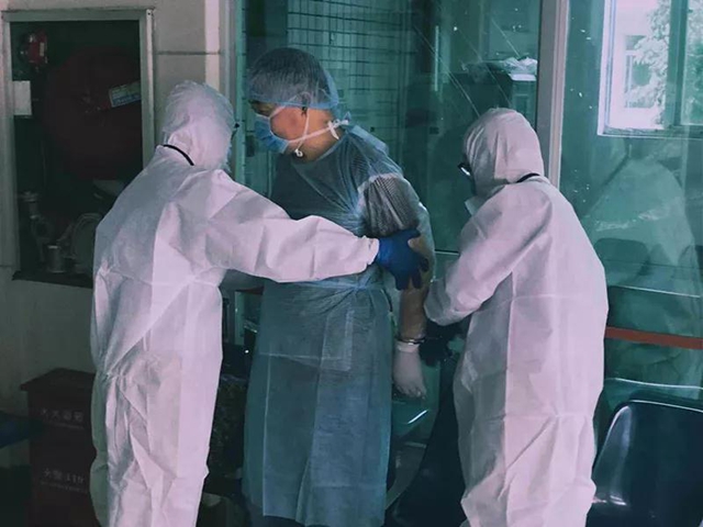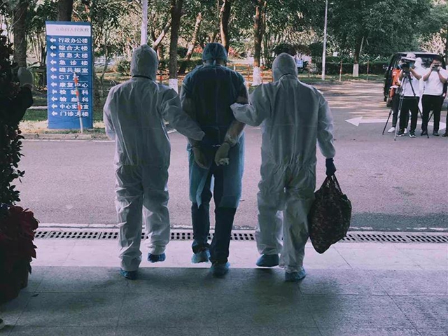 ▲2月15日下午,海南省東方市新冠肺炎確診患者張某智在海南省傳染病醫(yī)院治愈出院,因涉嫌以危險方法危害公共安全罪被東方市公安局依法采取強制措施。(海南省傳染病醫(yī)院供圖)