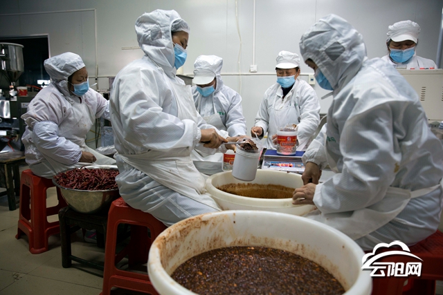 2月17日,云陽宏霖食品股份有限公司工人在廠房內翻曬辣椒醬、包裝佐料、熟食產品等,產品銷往廣州、上海、重慶等地。