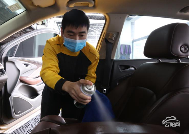 除了常規的清洗,該洗車行還增加了消毒水消毒、酒精消毒等防疫服務,此次為抗疫一線人員免費洗車將一直持續至疫情結束。