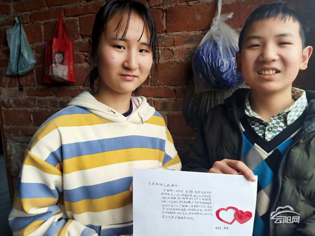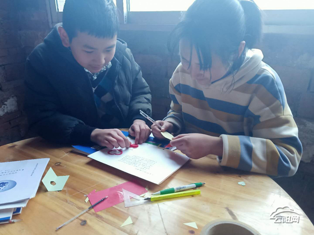 云陽網(wǎng)訊(記者 李充 通訊員 吳明萍)一張干凈的白紙,貼上紅紅的愛心,寫著感恩的文字……2月22日,養(yǎng)鹿鎮(zhèn)寶寨村五組的黃星星、黃琪姐弟倆特別高興,花一個下午的時間,用心制作了一張并不華麗的感恩卡,要答謝給他們溫暖與力量的愛心姐姐。