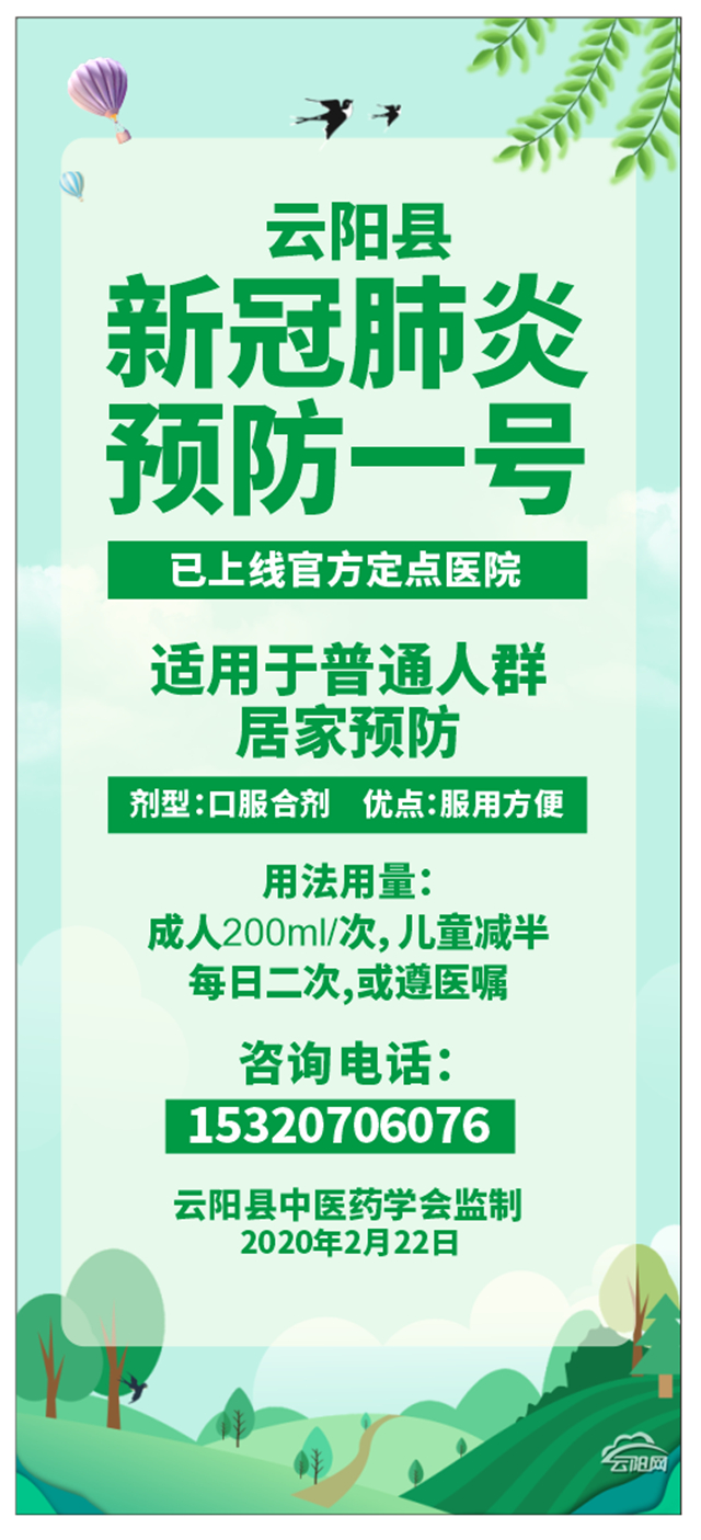 2月22日,云陽縣新冠肺炎疫情防控工作領(lǐng)導(dǎo)小組醫(yī)療救治組,根據(jù)國家衛(wèi)生健康委辦公廳、國家中醫(yī)藥管理局辦公室《關(guān)于印發(fā)新型冠狀病毒肺炎診療方案(試行第六版)的通知》等有關(guān)文件,組織云陽縣中醫(yī)藥學(xué)會(huì)專家組召開關(guān)于進(jìn)一步加強(qiáng)新型冠狀病毒肺炎中醫(yī)藥救治工作專題會(huì),經(jīng)研討決定,在原制定的云陽版“新冠肺炎預(yù)防處方”基礎(chǔ)上,再次開出針對云陽普通人群預(yù)防新冠肺炎的中藥預(yù)防處方。