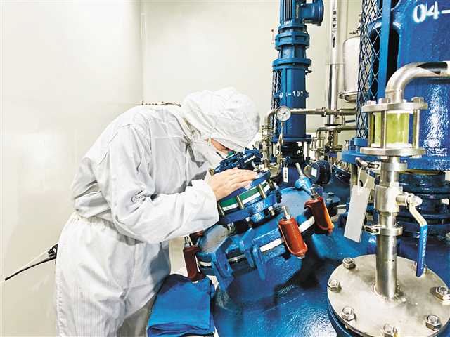 2月24日,位于重慶長(zhǎng)壽區(qū)的康樂制藥有限公司,工作人員正在生產(chǎn)線工作。該公司在做好疫情防控的前提下,于2月4日逐步復(fù)工,加緊生產(chǎn)防疫藥品磷酸氯喹。記者 齊嵐森 攝