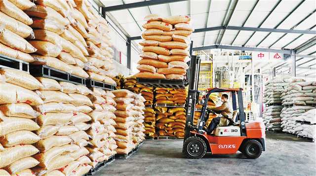 2月24日,酉陽(yáng)小壩全民創(chuàng)業(yè)園一飼料生產(chǎn)企業(yè),員工駕駛叉車搬運(yùn)原材料。該縣在企業(yè)防疫措施到位、部門驗(yàn)收合格的情況下,組織企業(yè)有序復(fù)工復(fù)產(chǎn)。通訊員 楊春來(lái) 攝