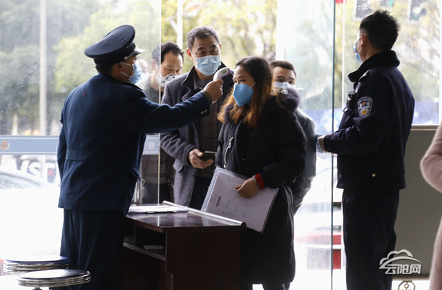 云陽網(wǎng)訊(記者王彬彬 朱學(xué)徽)“您好,請問辦理什么業(yè)務(wù)?請測下體溫,36.3℃,可以進(jìn)去了。”2月27日,縣車管所業(yè)務(wù)大廳門前,工作人員正在對進(jìn)入大廳辦理業(yè)務(wù)的群眾測體溫、登記等。
