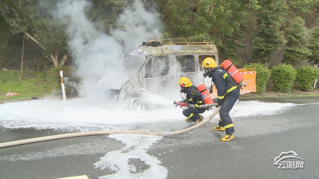 由于事發地距離云陽縣城不到十公里,云陽消防救援大隊消防員在事發后大約20分鐘后就趕到了現場,用時不到十分鐘就將火勢完全控制。但因火勢較猛,車身絕大部分已被燒毀。