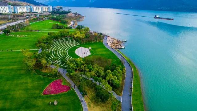 月光草坪位于云陽縣薛家溝組團片區,是環湖綠道重要景點之一。占地500余畝,其中草坪300余畝,是長江三峽最大的草坪公園。自行車道、跑步道、漫步道、驛站等配套設施齊備。有疏林草地、北斗之戀、紫薇星、南方的雪、藍花楹大道、月光劇場、等候、盟誓等節點,并設有兒童游戲場,是一處與長江水系相連的獨特的園林景觀。