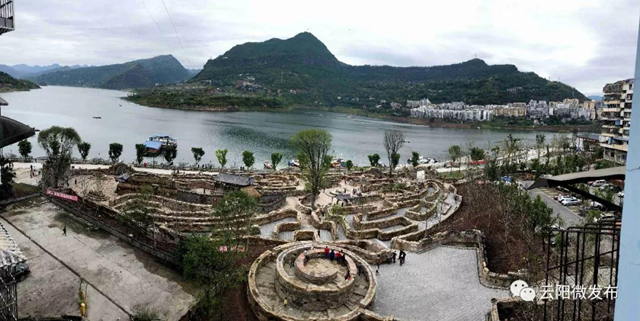 四方井景區西起云陽縣城兩江廣場、東止木魚包廣場,全長3公里,占地17萬平方米, 主要景點有“石來運轉”、“小江畫廊”、“絕壁棧道”、“攀爬墻”“木魚包驛站”等,自行車道、跑步道、漫步道“三道”貫通其中,直飲水、休憩處、服務中心等公共服務設施星羅棋布。