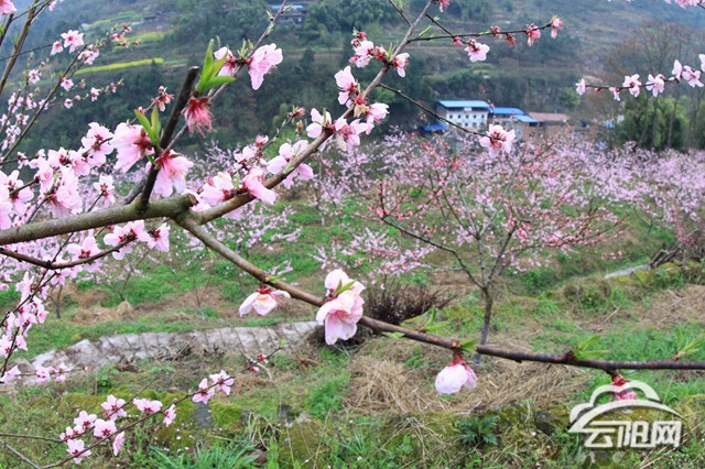 桃園內,朵朵桃花開得正燦爛,粉紅、深紅,瑩潔無瑕、旖旎多姿。微風吹過,醉人的花香夾著泥土的芬芳撲面而來,令人心曠神怡。