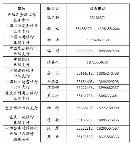 云陽縣金融支持企業(yè)復(fù)工復(fù)產(chǎn)與生產(chǎn)經(jīng)營咨詢服務(wù)電話