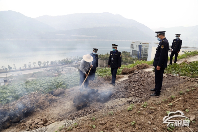 在現場,記者還看到一名老人正把一堆干草疊在一起焚燒,執法人員立即上前勸阻,并及時撲滅了正在焚燒的干草。