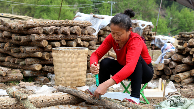 “一定要敲嚴(yán)實(shí)了!如果不把菌種打緊,就會(huì)進(jìn)水,種子就會(huì)掉落、爛種,長不出黑木耳。”技術(shù)員王連平在一旁教村民正確灌種。