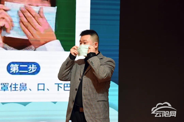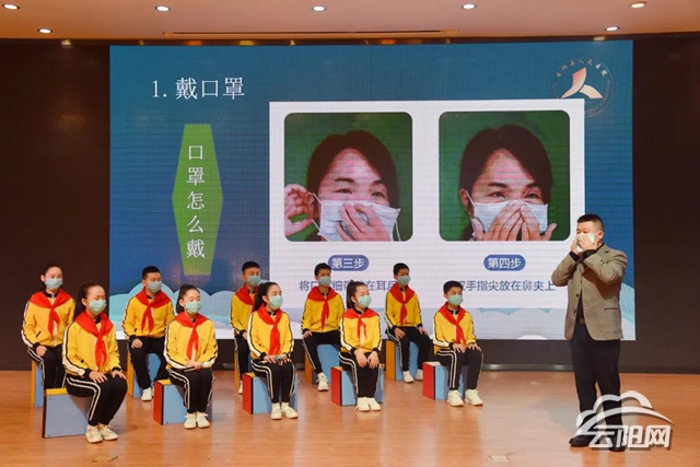 王立通過漫畫視頻、PPT等方式,由淺入深地向學生們講解什么是新型冠狀病毒肺炎、怎樣有效自我防護、如何提高免疫力等內容。授課現場還和學生頻頻互動,讓大家詳細了解新冠肺炎的相關知識。還向學生們示范了如何正確戴好口罩,保護自己的生命健康安全。