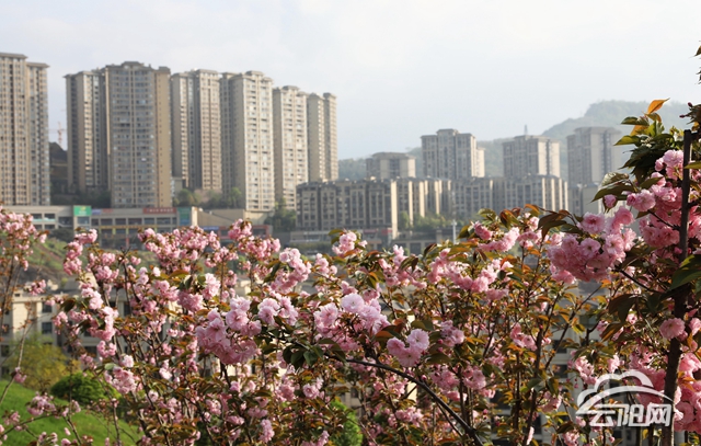 近日,在燈籠石公園,一排排櫻花引入眼簾,一朵朵,一團團,一簇簇,粉如云霞,迎著春光盛放在枝丫間。若有微風拂過,片片花瓣輕輕搖晃,美好俏麗,與遠處的城市樓宇相得益彰,令人目不暇接。