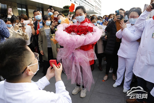 4月6日,是云陽縣支援湖北孝感市醫療隊回家的日子,一幕大型現場求婚在云陽縣人民醫院上演,引發眾多人圍觀,現場掌聲不斷,歡呼不止。溫馨的求婚現場,男女主人公沉浸在幸福之中,也讓在場見證者都感動得掉下眼淚。
