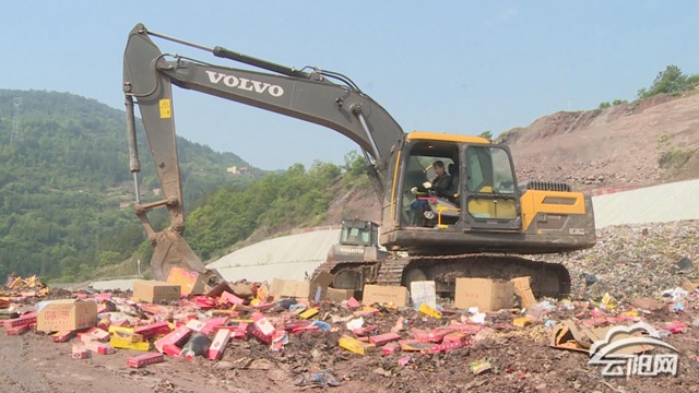 當(dāng)天,在相關(guān)單位工作人員進(jìn)行了物資清點核對后,裝滿各類假冒偽劣商品的車輛從城區(qū)出發(fā),統(tǒng)一運輸至位于人和街道的云陽垃圾處理場。在大型挖掘機(jī)的轟鳴聲中,各類假冒偽劣商品被重砸、碾壓銷毀,然后倒進(jìn)垃圾池進(jìn)行無害化處理。據(jù)了解,此次銷毀物資涉及食品、藥械、農(nóng)資等一大批事關(guān)百姓生命健康與合法權(quán)益的日常必需品,包括口罩、卷煙、調(diào)料、中藥材、種子、藥品等等,貨值合計60萬余元。