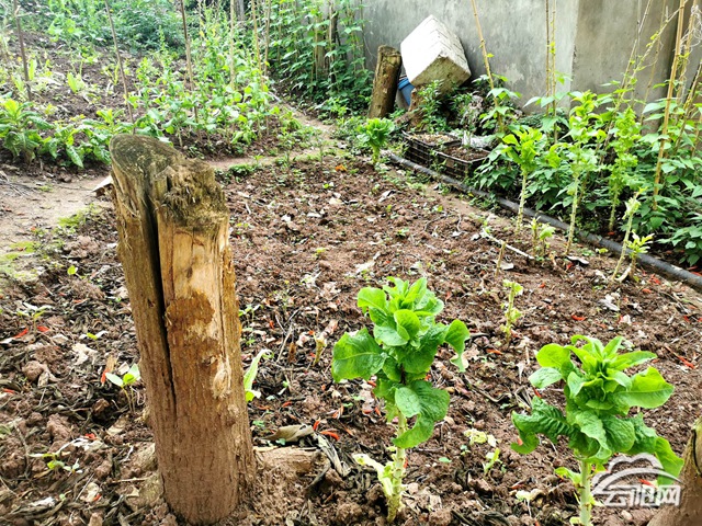 4月27日,根據(jù)市民提供的信息,記者在實驗小學(xué)宿舍樓后面的小山坡看到,郁郁蔥蔥的綠樹底下被分割成一個個大小不等“豆腐塊”,由高到低、順著地勢密布著大片“菜園子”。記者繞著小山坡走了一圈,只見這里大部分區(qū)域都已經(jīng)被“開發(fā)利用”。周圍原本枝葉茂盛的綠樹被折去了枝干,有的大樹甚至還被砍去,只剩下了樹樁。菜地周圍還堆放著不少的雜物和生活垃圾,時不時還有蒼蠅飛過,周圍環(huán)境顯得臟亂不堪。