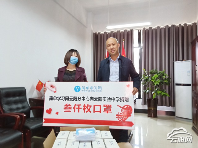 云陽網(wǎng)訊(通訊員 曾建華)近日,簡單學(xué)習(xí)網(wǎng)云陽分中心負(fù)責(zé)人劉凌,為外國語學(xué)校、實驗中學(xué)、鳳鳴中學(xué)、初一中和初三中的孩子們捐贈了共計15000只一次性醫(yī)用口罩,助力復(fù)課安全。