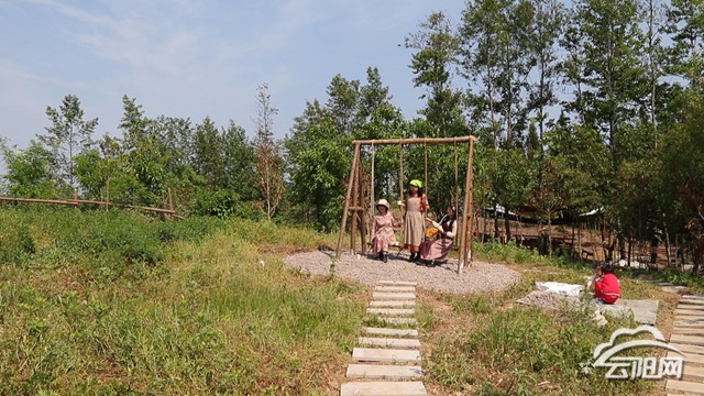 除了主題攝影,游客們還能蕩秋千、玩蹺蹺板,玩累了到農莊旁的小森林散步、休憩、采桑葚。