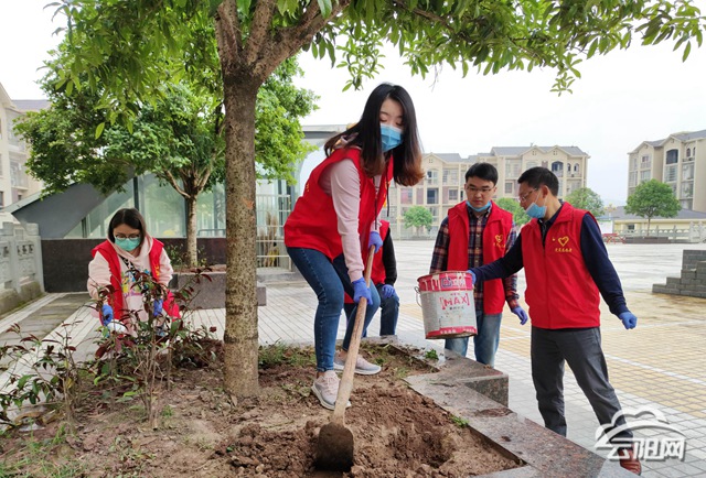 活動中,青年干部以飽滿的熱情、高昂的斗志,對社區環境進行了清理,大家手拿鏟子、掃帚、鐵鍬等清潔工具,一絲不茍地清理著死角和小區綠地的垃圾和雜物。同時,大家還開展了義務植樹活動,青年干部們鼓足干勁,分工協作,相互配合,鏟土放苗、扶正填土、踩實澆水……每一個環節都仔細認真,經過共同努力,樹苗在社區內迎風挺立,萌發出盎然生機。