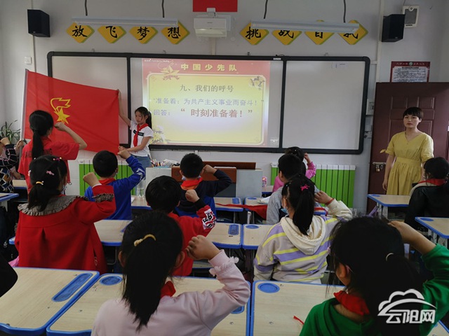 活動分為不同年級舉行,一年級的孩子們舉行入隊儀式,學習隊前教育,了解隊史、少先隊標志禮儀,學習紅領巾的正確系法,老師們耐心地教授,孩子們虛心地學習。隨后,孩子們一起齊唱隊歌,為入隊做準備。