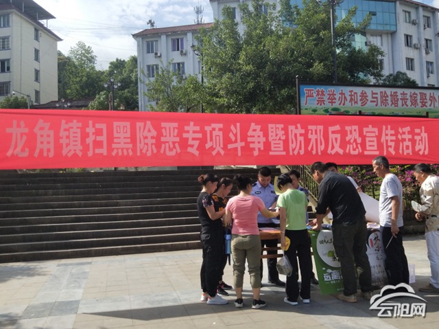 云陽網訊(通訊員 王玉霞)近日,龍角鎮平安辦聯合龍角派出所、五龍社區在五龍廣場集中開展掃黑除惡專項斗爭暨防邪反恐宣傳活動。