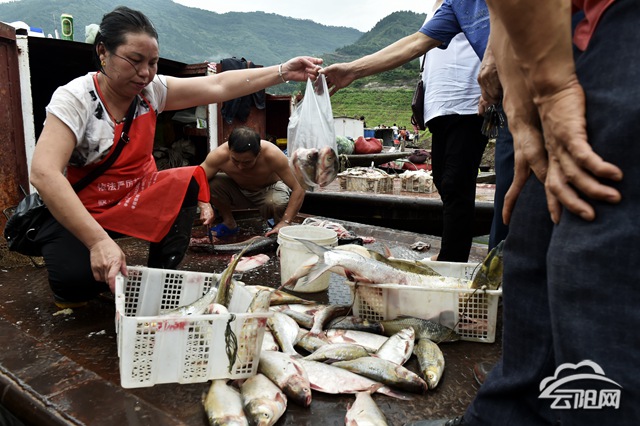 云陽(yáng)網(wǎng)訊(通訊員 饒國(guó)君) 7月1日清晨,在云陽(yáng)縣高陽(yáng)鎮(zhèn)漁船碼頭,禁漁期過(guò)后的首捕收獲滿(mǎn)滿(mǎn)。當(dāng)四十多條漁船陸續(xù)抵達(dá)岸邊,購(gòu)買(mǎi)鮮貨的市民群眾聚集在這里歡快交易。一時(shí)間熙熙攘攘、人聲鼎沸,這種“以岸為場(chǎng)、以船為市”的三峽漁業(yè)現(xiàn)象維持“最后一捕”,從此將淡出人們視線,開(kāi)啟生態(tài)文明新局面。