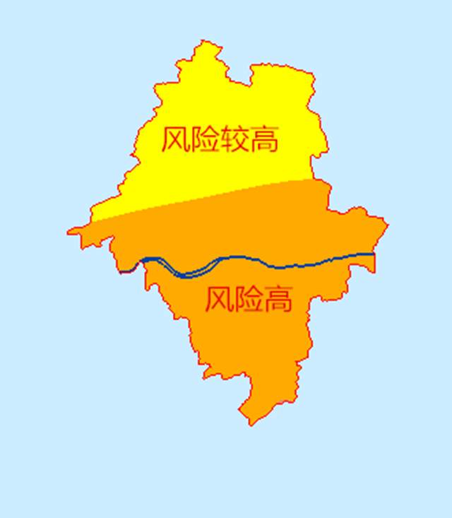 預(yù)計(jì)長江沿線及其以南鄉(xiāng)鎮(zhèn)地質(zhì)災(zāi)害風(fēng)險(xiǎn)高,其余鄉(xiāng)鎮(zhèn)風(fēng)險(xiǎn)較高(見圖2)。