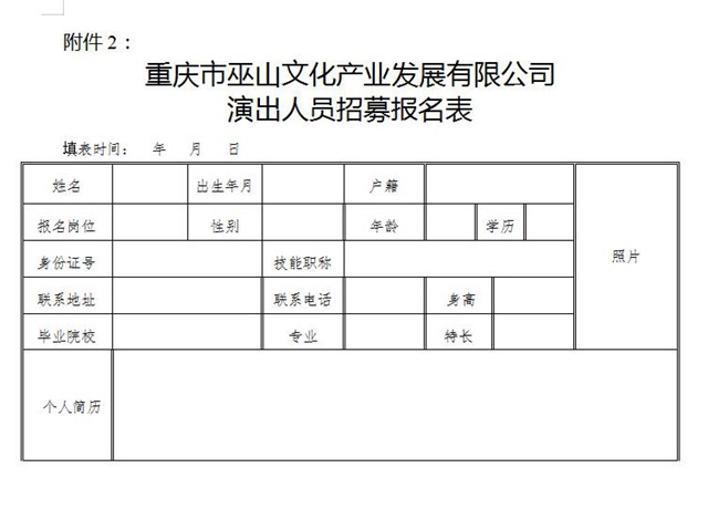 附件2:《巫山神女》劇場演出人員招聘報名表