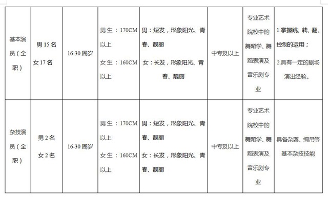 2.除交納五險一金外,并另購買200元意外保險(雜技演員500元),縣外演員統一提供住宿,所有演員提供自費食堂。