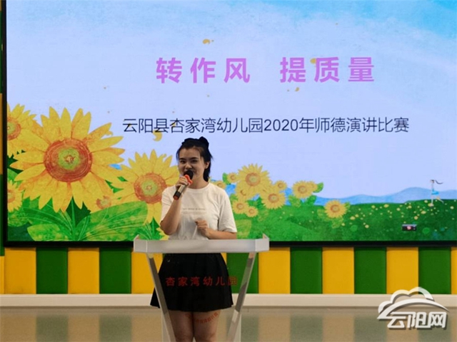 云陽網(wǎng)訊(通訊員 冉鑫云)為全面提升教職工的思想政治素質(zhì)和職業(yè)道德水平,踐行社會(huì)主義核心價(jià)值觀,爭(zhēng)做“四有”好老師,7月14日,杏家灣幼兒園舉行了以“轉(zhuǎn)作風(fēng) 提質(zhì)量”為主題的師德演講比賽。