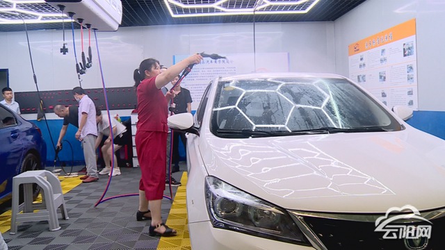 在汽車美容培訓課堂,學員與教師一對一互動,實操課程中教師親手為學員做示范,做到理論知識與實際操作相結合,讓學員不僅聽、看,還能親手操作,真正為學員找到了一項就業技能,提供創業就業機會。