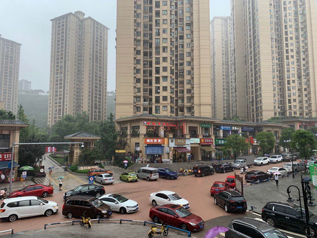 云陽網訊(記者 陳小婭)截至今天下午6:00,云陽城區強降雨仍在持續,多條城區主次干道積澇嚴重。記者在金科世界城1號門看到,口福街主路積水嚴重,市民過馬路需淌水而行,目測積水最深處大約二至三十厘米。目前,縣城管部門正全力開展巡查和排澇工作。提請市民密切關注天氣信息,注意自身安全,駕駛員需檢查車況,盡量避開積澇嚴重路段。
