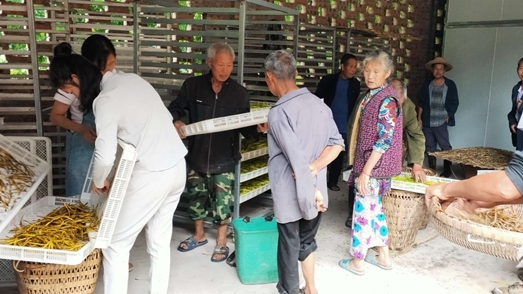 據介紹,興梨村種植大戶成立黃花種植專業合作社,采用“合作社+村集體+農戶+基地”模式,通過“以點帶面”的方式,即農戶以土地入股的形式加入到合作社,按照“3142”股改模式進行分紅,有效激發了村集體和農戶的積極性。同時,由村集體出資,修建了一座占地面積近100平方米烘干房。合作社負責黃花栽植技術、包裝、銷售。農戶負責基地種植、管理,真正形成了從上游栽植、管理,中游烘干、加工,下游包裝、銷售為一體的“供產銷”黃花產業鏈。