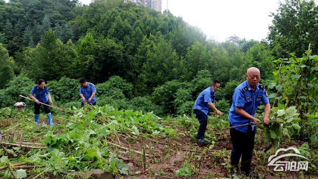 云陽網訊(記者 陳愛玲 趙曉龍 實習生 李歆宇)7月21日,云陽縣城市管理綜合行政執法支隊聯合縣公園管理所、社區工作人員對伴江公園、移民大道220號、大雁路544號等地的閑置土地變“私家菜園”現象開展鏟除整治工作。