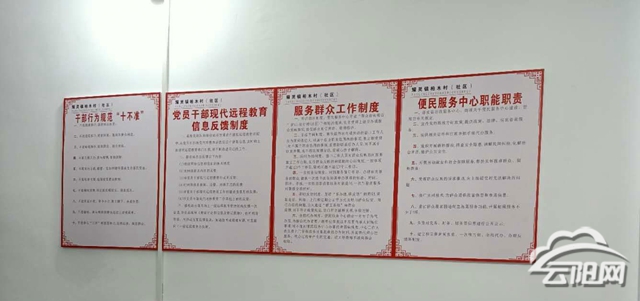新更換的公示欄規范了公示內容,更新了村情簡介,新增了任期規劃,完善了村支兩委工作職責等內容。同時,各村(社區)便民服務中心的各項管理制度也緊跟鄉村振興、脫貧攻堅、黨建發展等工作方向,更新管理制度、辦事流程、黨建宣傳標語。進一步增強村委工作的透明度,規范基層干部行為和職能職責,激發了黨員干部為民干事工作激情。