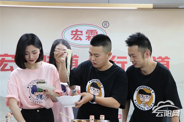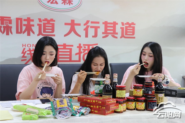 在盤(pán)龍創(chuàng)業(yè)園重慶宏霖食品有限公司直播間里,團(tuán)員青年代表和該公司總經(jīng)理譚曉紅組成吃播團(tuán)隊(duì),現(xiàn)場(chǎng)試吃公司新推出的香辣烤魚(yú)、豆豉烤魚(yú)、麻辣小龍蝦等產(chǎn)品。主播們還現(xiàn)場(chǎng)煮了一碗云陽(yáng)面,加入宏霖食品有限公司的手工釀造醬油、花椒醬、蘿卜干醬等調(diào)料,對(duì)著鏡頭大快朵頤。“這就是重慶味道,麻辣鮮香,快買(mǎi)快買(mǎi)?!?/p>