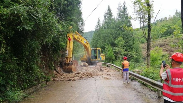 災情發生后,中國十九冶開云高速項目部第一時間將挖掘機、裝載機、自卸汽車等機械設備運送到險情路段,同時,派出8名項目部工作人員協助鎮政府搶修道路,20人經過 12小時的奮力搶修,終于疏通了發生險情的道路,保障了人民群眾的生命財產安全。